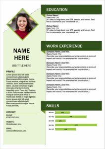 เทมเพลต เรซูเม่ สไตล์ Creative นี้ ทำด้วย โปรแกรม Word ใช้โทนสีเขียวที่ จะทำให้คุณดูเป็นมืออาชีพ พร้อม หัวข้อการทำงาน การเรียน และ ตำแหน่งให้วางรูปถ่ายของคุณ ได้เต็มที่ ดาวน์โหลดได้ฟรีที่นี่