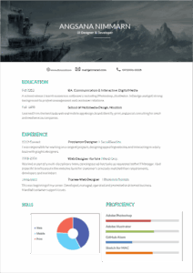 หรือ เพิ่ม แผนภูมิแท่ง หรือ แผนภูมิวงกลม แสดงความชำนาญ ในด้านนั้นๆ ด้วย infographic เข้ามาช่วย จะทำให้ เรซูเม่ ดูน่าสนใจ มากขึ้น (แต่อย่าใส่เยอะเกิน)