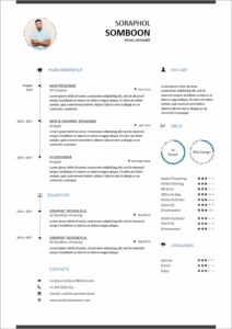 เทมเพลต เรซูเม่ สไตล์ Creative นี้ ทำด้วย โปรแกรม Word ที่คุณ สามารถโหลดไปใช้ได้ฟรี ข้อดี คือ มีหัวข้อ ความถนัด และ ทักษะพิเศษต่างๆ ที่สามารถแสดง ด้วยการใช้ infographic ทั้งแบบ แถบ และ แผนภูมิวงกลม ที่จะทำให้ เรซูเม่ ของคุณ อ่านง่าย ไม่น่าเบื่อ ดาวน์โหลดได้ฟรีที่นี่