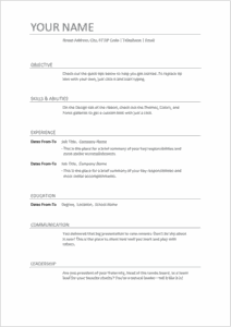 ซึ่ง แบบฟอร์มเรซูเม่ ที่ใช้ โปรแกรม Microsoft Word นี้ เป็นโปรแกรมที่ใช้ง่าย และ เป็นโปรแกรมพื้นฐาน ที่พวกเราส่วนใหญ่เข้าใจกัน ซึ่ง ไฟล์ ของ แบบฟอร์มเรซูเม่สมัครงาน ที่เราจะแจกให้ ฟรี นี้ จะเป็นไฟล์ .doc (ไฟล์ word รุ่นเก่า) หรือ .docx (ไฟล์ word รุ่นใหม่ขึ้นมา)