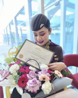 “คือเราคิดว่า ถ้าไม่ใช่ เพราะแอร์แขก ก็คงไม่ได้มาเป็น ลูกเรือ Etihad ได้อย่างรวดเร็วขนาดนี้ โดยใช้เวลา ทั้งหมด เพียง 6 เดือน ก็ติดปีกเลย”